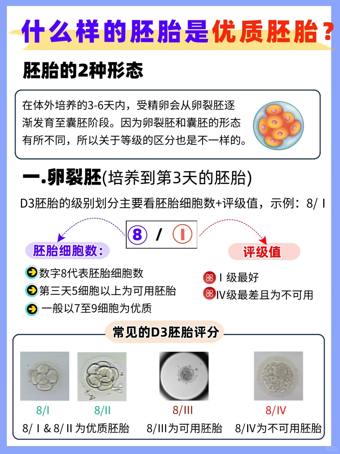 D3胚胎的级别划分主要看胚胎细胞数+评级值,